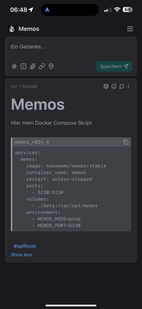 Ich probiere gerne neue Tools aus – so bin ich zufällig auf die Docker-Anwendung Memos gestoßen. Diese verfolgt einen etwas anderen Ansatz: Sie läuft in einer schlanken, übersichtlichen Web-GUI. Der Funktionsumfang ist zwar begrenzt, reicht jedoch vollkommen für kurze Notizen und Gedankenstützen aus.