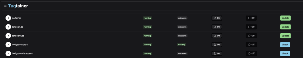 Tugtainer ist praktisch WatchTower mit einer WebGUI. So lassen sich deine Container sauber updaten. Das Tool sucht nach Updates und aktualisiert es auf Wunsch sofort. Alternativ schaut es nur nach Updates und du aktualizierst es, wenn du dafür Zeit hast über den Button Update in Tugtainer. Auch das Entfernen von alten Images ist per Knopfdruck möglich.