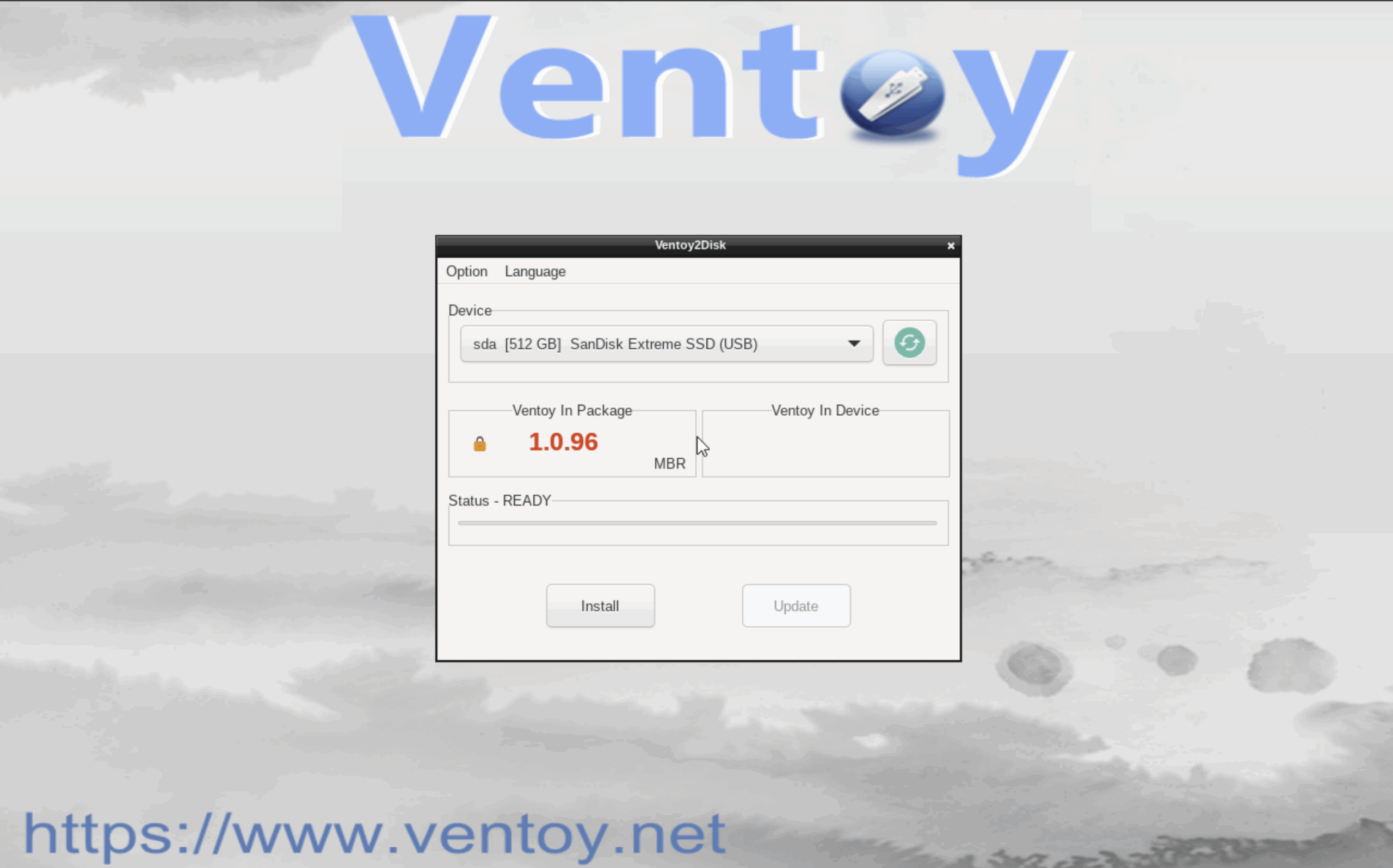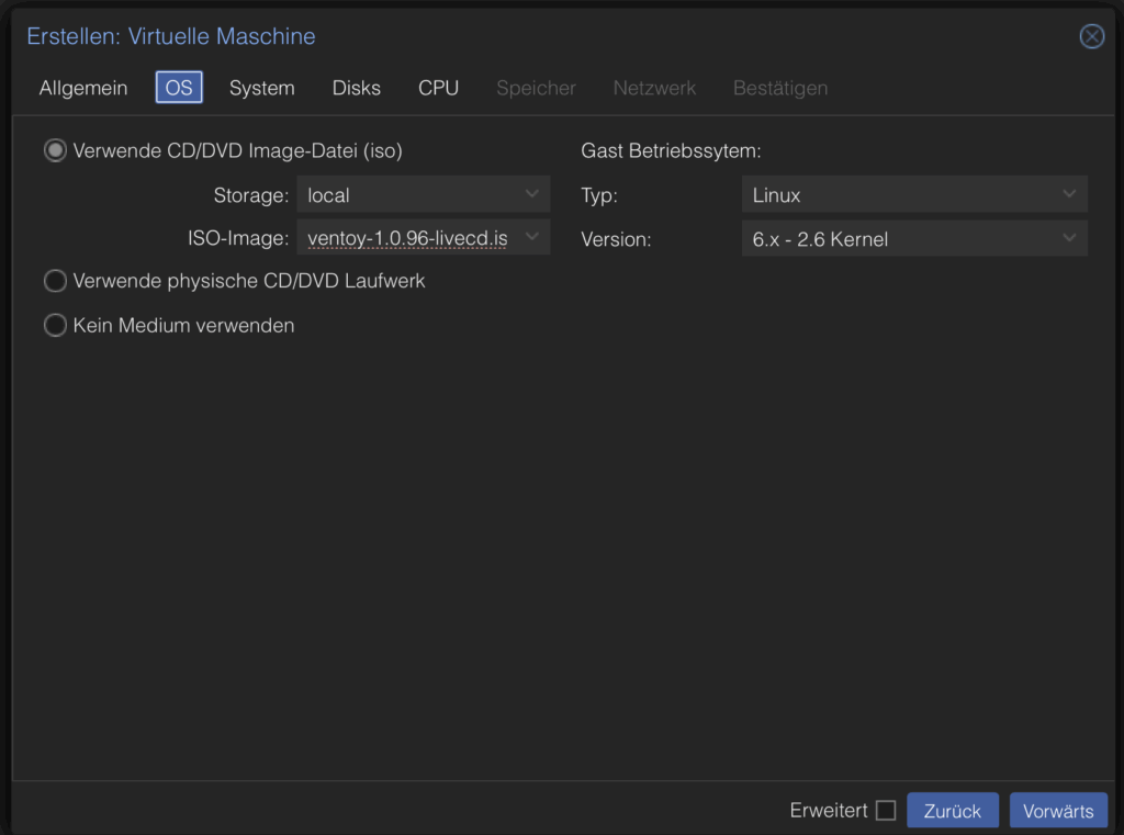 Ich habe mir die Ventoy-Live-CD auf meinen Server geladen.
