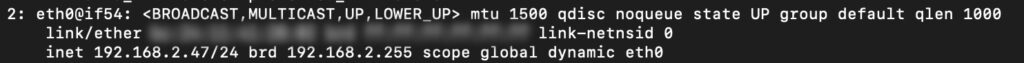 Das Netzwerk findest du z.B. über das Terminal mit dem Befehl ip a heraus. In den meisten fällen handelt es sich um den zweiten Eintrag. Bei mit siehst du eth0.